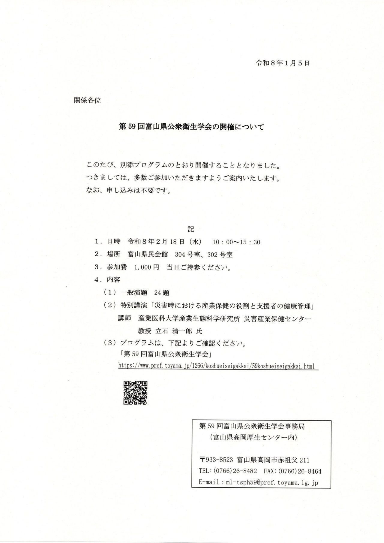 第59回富山県公衆衛生学会事務局(富山県高岡厚生センター)